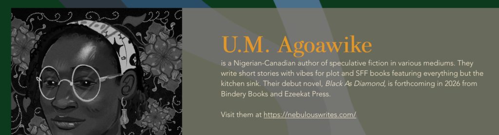 U.M. Agoawike is a queer Nigerian-Canadian author of speculative fiction. They also may or may not be an evil duck. Follow them on BlueSky!